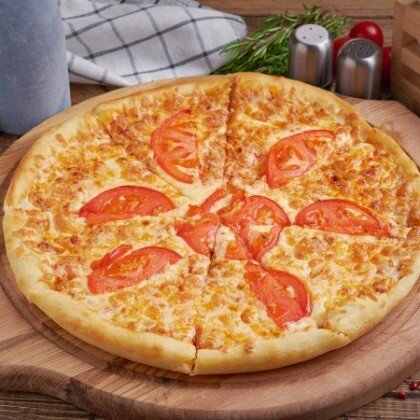 Сыр моцарелла, помидоры черри, куриное филе цезарь замаринованное по особому рецепту